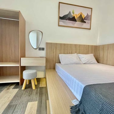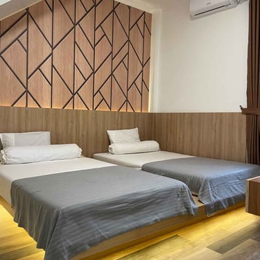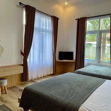 Setiap kamar didesain modern dan hangat, cocok untuk keluarga besar atau rombongan hingga belasan orang.