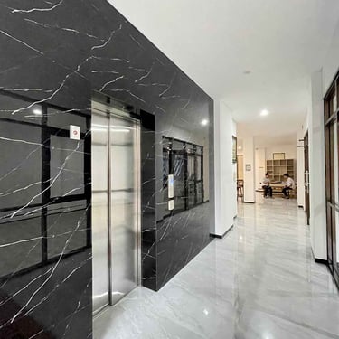 Bangunan apartemen-style dengan lift, koridor luas, dan sistem pengelolaan profesional oleh KAWA Indonesia.