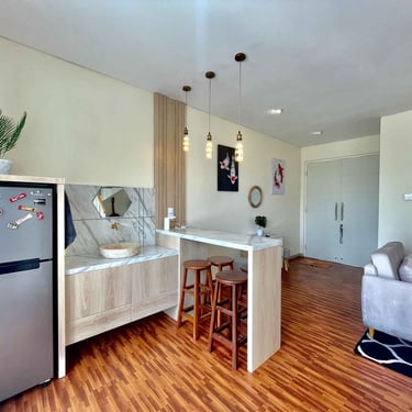 Ruang keluarga dan dapur compact namun lengkap, mendukung kebersamaan tanpa terasa sempit.
