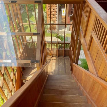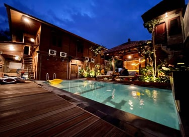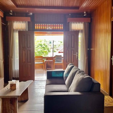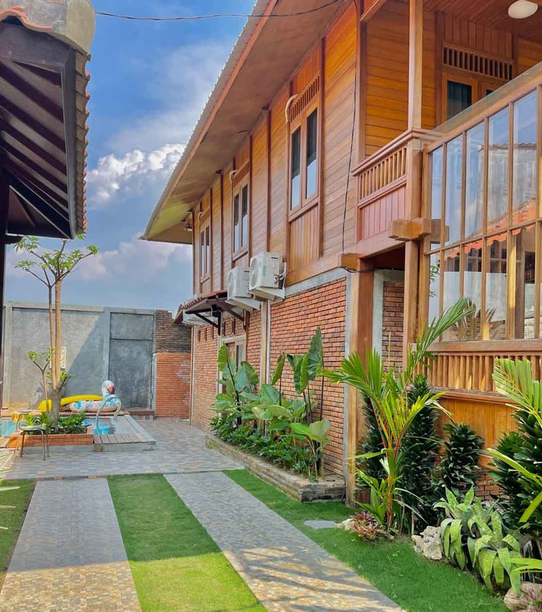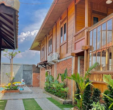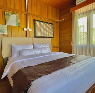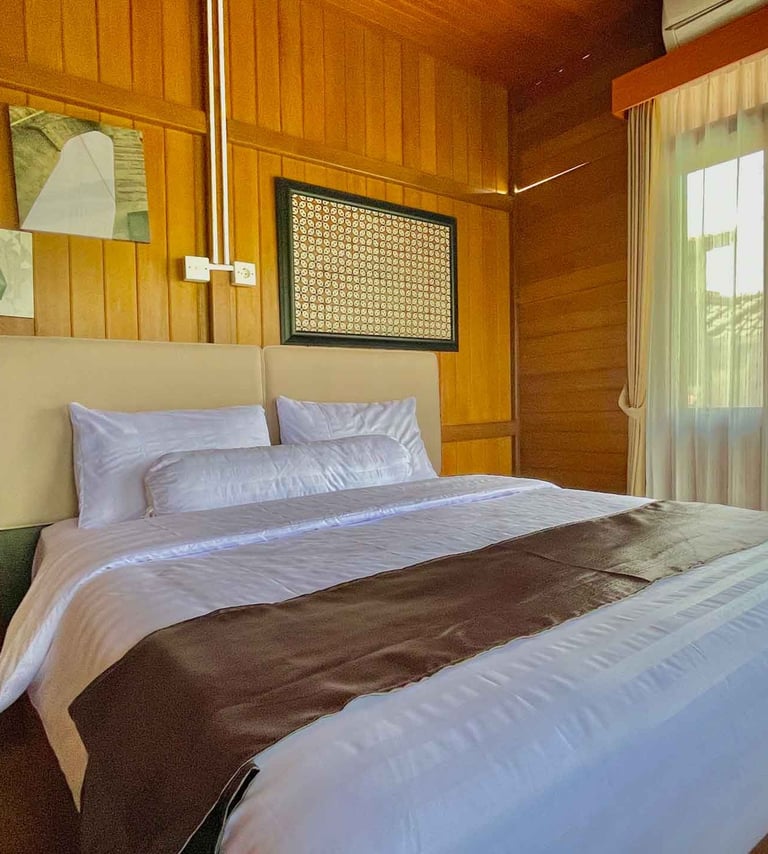 Desain kayu klasik dengan nuansa natural menciptakan suasana menginap yang tenang, nyaman, dan terasa seperti pulang ke rumah.